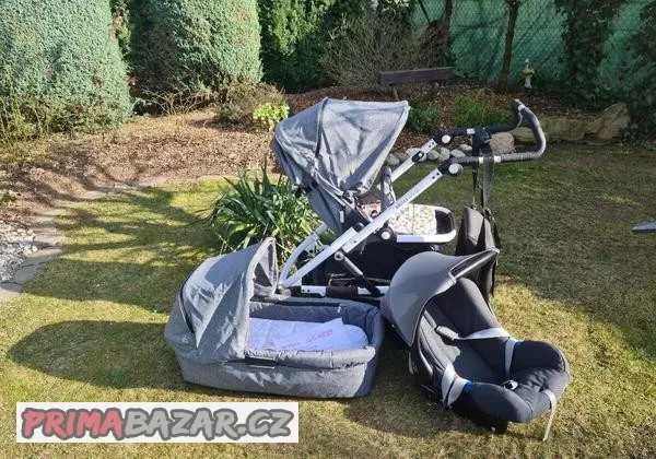 Prodám kočárek v krásném stavu,vyčištěný,trojkombinace, prostorná korba,vhodný do terénu, spousta doplňků(pláštěnka, moskytiera, taška,fusak,adaptéry, isofix,novorozenecká vložka...)