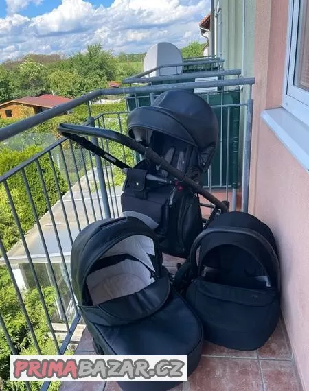 Krásný černý kočárek značky Anex. Komplet 3v1. Ke kočárku přidám pláštěnku. Osobní odběr v Chýně nebo Praha 13 Stodůlky.