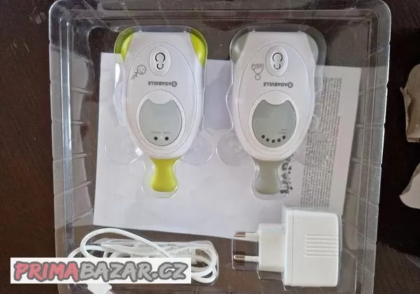 Chůvička Badabulle (babysitting) do cca 300 m. Na malé tužkové baterie AAA nebo na el. kabel. Zakoupeno v Datartu. Noční svícení, 2 frekvence přenášení signálu, vibrace, volume.
