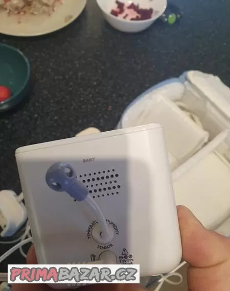 Starší chuvicka, do sítě i aku... v přijímači slabší baterie, ale měla by jít případně vyměnit... teploměr, ukolebavky, včetně přepravního obalu...