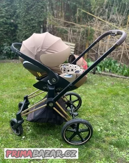Prodám krásný kočárek v dvojkombinaci (hluboká korbička + vajíčko) a podvozek (barva Rose Gold) značky Cybex Priam by Karolína Kurková.