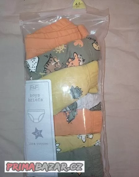 Dětské, chlapecké slipy, pro věk 4-5 let. Celkem 7 ks. 100% bavlna.