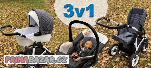 Hluboký kočárek, sporťák + vajíčko na přenášení a převážení v autě.