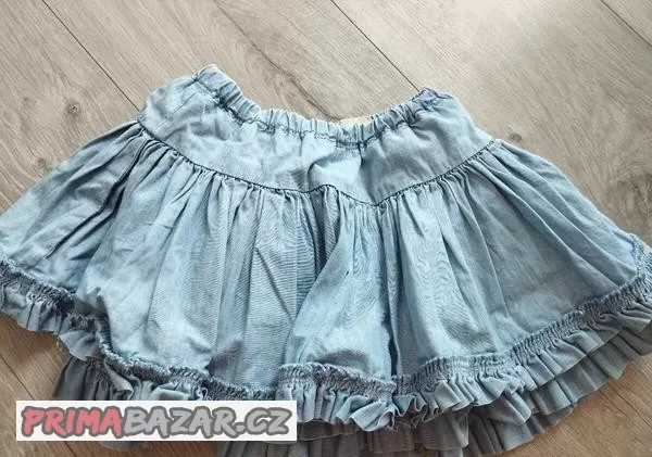 Prodám dívčí vrstvenou džínovou sukni, v pase do gumy pas 27cm, délka 29cm velikost 116. Ve velmi dobrém stavu. Cena 80kč