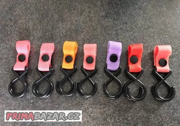 Prodám háček na kočárek. Celý dvojháček unese až 5kg ! Barvy viz foto.