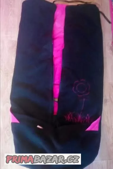 Má otvory na pásy do sporťáku, lze také rozepnout úplně jako deka.