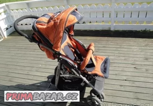 Prodám velmi prostorný, lehký sportovní kočárek Hoco Scout s nánožníkem, který má výškově nastavitelnou rukojeť, odnímatelnou přední hrazdu. Polohování zad i nohou nastavitelné do několika poloh. Bouda se sklápěcí sluneční clonou, okénkem, odnímatelnou zadní částí a kapsou na boudě. Odnímatelná zadní část boudy s malou kapsou. Lehká polyuretanová kola. Přední otočná kola s fixací. Výhodou je velký nákupní košík. Váha 7,5 kg.