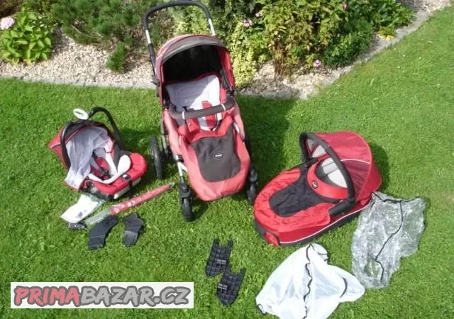 Kočár X lander trojkombinace čtyřkolka. Čtyřkolka s nafukovacími koly a možností aretace předních kol, pohodlné řízení kočárku. Nastavitelná výška rukojeti. Barva vínová. Korbička, autosedačka s úložnou přihrádkou v zadní části, sportovní kočárek, moskytiery, pláštěnka, deštník asi 1x použitý ( PC 590Kč), adaptery, pumpička.Vše plně funkční, sportovní kočárek jen vybledlý od sluníčka, u zapínání překrytí korbičky po každé straně 2 patentky, na jedné straně 1 nedrží, ničemu ale nevadí, drží. Kočárek je velmi praktický, pohodlný na ovládání, vypraný. Osobní předání Mukařov, případně lze domluvit na Praze 4. PC cca 15 000Kč