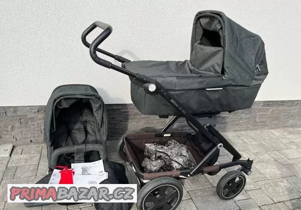 Součástí: podvozek, hluboká korba, sportovní kočárek včetně nánožníku, pláštěnky na obě verze, adaptéry na umístění autosedačky.