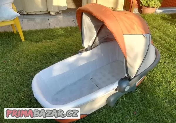 Prodám kočárek Cam Cortina X3 - trojkombinace (obsahuje hlubokou korbu, sporťák, autosedačku-vajíčko). Vše lze lehce vycvaknout a nacvaknout na kostru. Rukojeť je polohovatelná a je možno ji nastavit na oba směry. Má 3 kola – přední kolo je otočné, lze zaaretovat, zadní jsou s brzdou. Ke kočárku je taška.