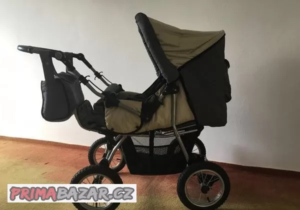 Kočárek Deltim, ve velmi zachovalém stavu. Kočárek je v trojkombinaci, prostorný i pro větší děti, s velkými odpruženými koly, vhodný i do terénů a neupravovaných cest, přehazovací rukojeť s možností nastavení výšky držadla, sklápěcí boudička. Kočárek se dá složit do auta, součástí je jednobodový bezpečnostní pás, košík pod kočárkem, taška na kočárek,venkovní krycí nánožník, pláštěnka.