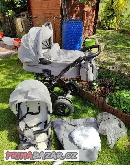 Prodám starší, ale plně funkční kočárek 2v1 s doplňky jako je moskytiéra, 2x pláštěnka (na korbu i sporťák), přebalovací taška, kšíry. Kočárek má velkou prostornou korbičku. Super jsou i nafukovací kola s kterými se dá projet dá se říct všude. Cena za 2v1 2500,--