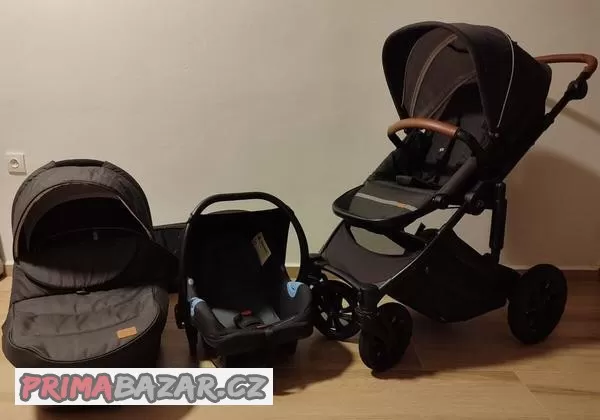 Kočárek v pěkném stavu po jednou dítěti. Nastavitelná výše rukojeti, jednoduchý skládací mechanismus a nafukovací kola. Obsahuje:rám kočárku s nafukovacími koly, autosedačku MINK, hlubokou korbu, lehkou pohodlnou sportovní sedačku,pláštěnku,přebalovací tašku, pumpu.