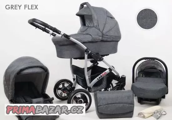 Prodám kočárek Largo. Kombinovaný kočárek Rafpol Largo je trojkombinace se skvělým designem, lehkou manipulací a nafukovacími koly. Součástí kočárku je hluboká korbička, sportovní sedák, autosedačka, přebalovací taška.