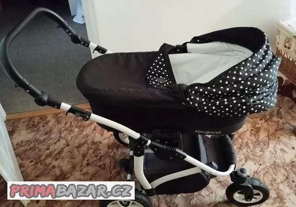 Prodám černý kočárek Margaret, původně se jednalo o dvoukombinaci - sportovní korbička chybí, tudíž je pouze s hlubokou korbičkou. Téměř nepoužívaný, nepatrné oděrky. Rukojeť je nastavitelná, součástí je koš pod kočárek. V případě zájmu volejte. Možnost předání - Brno.