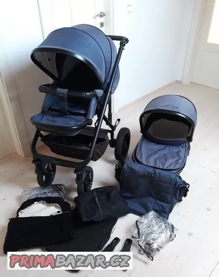 jeví známky běžného užívání, nějaké odřeninky na konstrukci, vyšisovaná látka, jinak v pořádku. Parkován v suché teplé verandě. S příslušenstvím: pláštěnky na korbu i sportovní část, nánožník Emitex, originál přebalovací taška-jako nová, nástavec na autosedačku Cybex,Maxi cosi, doma vyrobený fleece fusak, rukávník Kaarsgaren, podložka se sovičkou. Kočárek kupován nový, nyní po našich 2 dětech. Byli jsme spokojeni, dobře ovladatelný, polohovatelný, jednoduše skladný. Osobní odběr možný Týnec nad Sázavou, Praha-Průhonice. Odeslat můžeme prostř GLS za 250,-