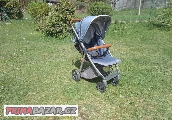 s hnědými koženými madly,lehce skládací,skladný.Originál pláštěnka a taška.Cena 500 kč.