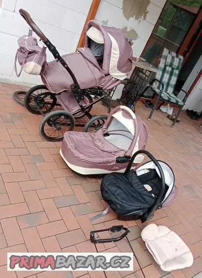 Prodám hnědý kočárek po dvou dětech, používán převážně na spaní. Pěkný stav a velký prostor, jízda v obouch směrech. Madlo je polohovací, všechny korbičky mají větrací stříšky. Podvozek je pérovací.