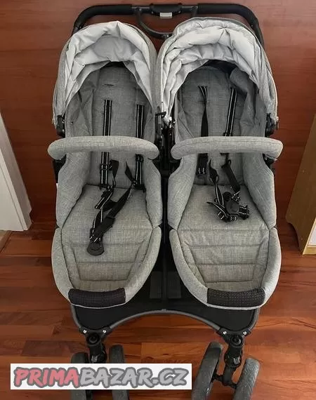 Kočárek je v dobrém stavu, nejvíce to odnesla kola, která se dají vyměnit, ale podle mého to není potřeba. Má nánožníky, pláštěnku, prodlouženou stříšku, sedadla se dají dát po směru i proti směru jízdy, madla lze odepnout. Kočárek se dá snadno složit takto celý nebo rozebrat na části. Po dohodě můžeme dovézt po Praze.