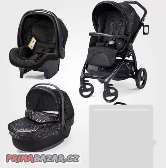 Prodám Kočárek Versace černý ORIGINAL, nepoškozený, MINIMÁLNĚ POUŽITÝ, trojkombinace - autosedačka, korbička, golfáče. Original kabela VERSACE.