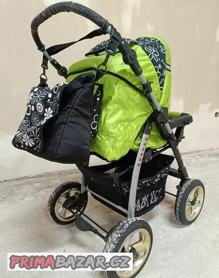 Prodám zelený kočárek s příslušenstvím. Dá se otočit madlo-vidíte na dítě / dítě vidí kam se jede