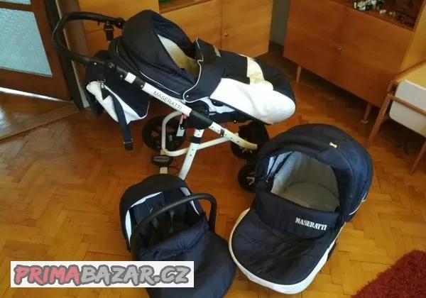Prodám kočárek zn. Maseratti. Trojkombinace (sedačka, hluboký, sporťák - viz foto) včetně příslušenství. Pouze osobní odběr, Slatiňany. Cena za komplet 3.100 Kč. Sleva možná.