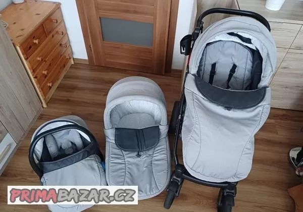 Prodam kocarek (trojkombinaci) ve velmi dobrem stavu. Konstrukce kocarku je lehce poskrabana, ale na funkci to nema zadny vliv. Kocarek ma gelova kola, ktera jsou vhodna do jakehokoliv terenu. Prislusenstvi ke kocarku je drzak na piti, sit proti hmyzu, plastenka,prebalovaci taska, slunecnik a nastavce na autosedacku, ktera se da dat na konstrukci kocarku. Odber pouze osobni v obci Zercice u Mlade Boleslavi a platba hotove pri prevzeti.