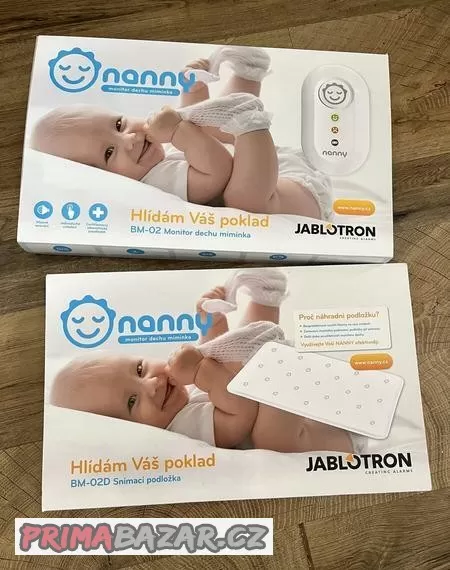 Prodám monitor dechu Jablotron Nanny se dvěma podložkami. Kupovaný v roce 2020, po dvou dětech, druhá podložka využívána minimálně - v kolébce a párkrát v cestovní postýlce.