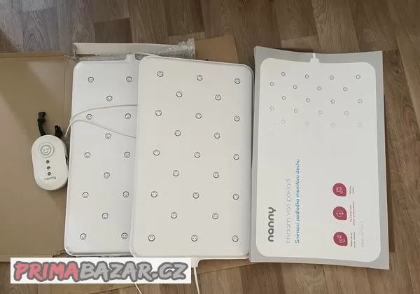 Monitor dechu Nanny, 2 desky, pořízeno 08/2022, používáno cca půl roku. Při osobním předání mohu předat i desku do postýlky pod desku monitoru