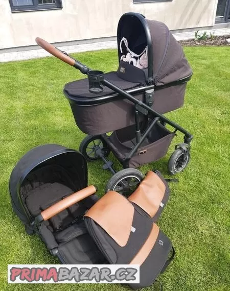 Kočárek Moon Nuova Air v kompletním vybavením + autosedačka Cybex se základnou na isofix. Součástí-originál taška( organizér) + batoh,držák nápojů,pláštěnka,adaptéry na autosedačku,síťka proti hmyzu.
