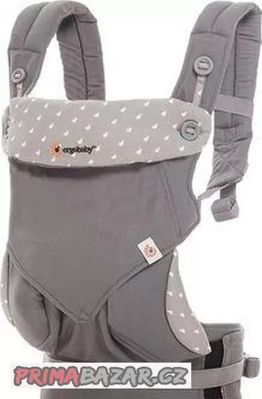 Nosítko Ergobaby Four Position 360 (Dewy Grey) s novorozeneckou vsadkou. V ceně jsou i slintáky na ramenní popruhy. Dítě je možné nosit i tak, aby koukalo dopředu.