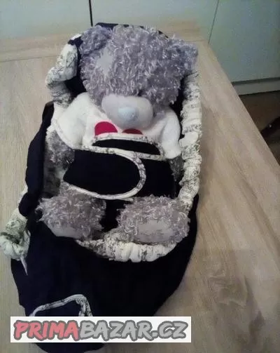 nosítko INFANTINO od narození, s nastavitelnou délkou popruhu, možnost připoutání miminka - podobně jako u autosedačky(tří bodový pás), kapsička venkovní na klíče... vnitřní na drobnosti pro mimčo. Vnitřek béžový s obrázky, povrch černý. Nosítko užívané 2roky, bez závad