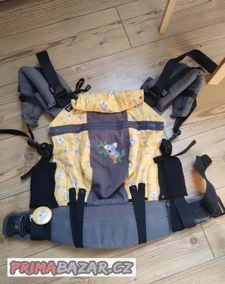 Zpevněný a zkrácený bederak o 5 cm. Zkrácené ramenní popruhy o 3 cm. Nosítko používané. K němu skoro nepoužité rozšiřovače