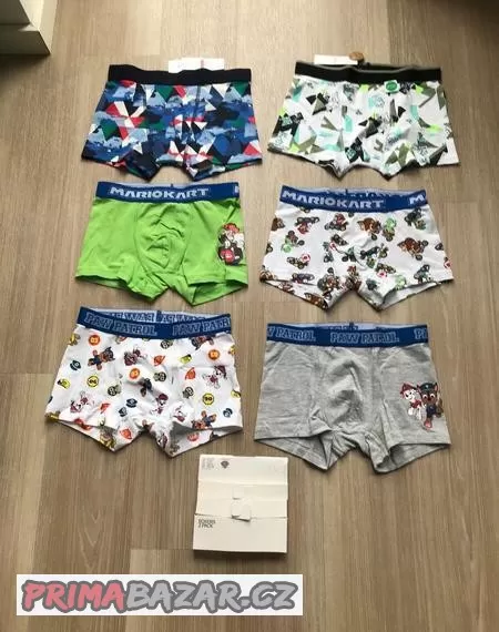 Prodám nové trenkoslipy Lindex, vel. 134/140, 8-10 let. Nové trenkoslipy H&M Tlapková patrola, vel. 134/140, 8-10 let. Krátce používané trenkoslipy H&M Supermario, vel. 134/140, 8-10 let. Osobní předání Praha 4, metro Budějovická nebo mohu poslat českou poštou nebo zásilkovnou dle platného ceníku.