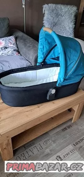 Koupený nový v 2023.extra velká korba,nafukovací kola s aretací,vhodný I do terenu,zvětšující adaptéry na korbu pro vysoké rodice, polohovaci madlo,pláštěnka,kabelka,moskytiéra,dokoupeny adaptéry Maxi cosi na většinu kvalitních autosedaček.jezdeny 7 mesicu-ne denně.mini škrábance od skládání do auta se najdou.korbu lze přenášet i v ruce.PC:30 tis