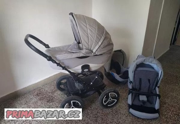 Kočárek se skládá z autosedačky (vajíčko), hluboké korby a sporťáku. Korbičku jsme používali asi 9 měsíců, sporťák skoro vůbec. Kočárek má drobné odřeniny od skládání do auta. Ke kočárku je pláštěnka a fusak.