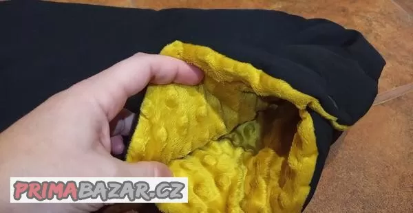 Šité na zakázku v ČR (značka Hajan), po jednom dítěti, zvrchu softshell v černé barvě, uvnitř heboučký minky materiál