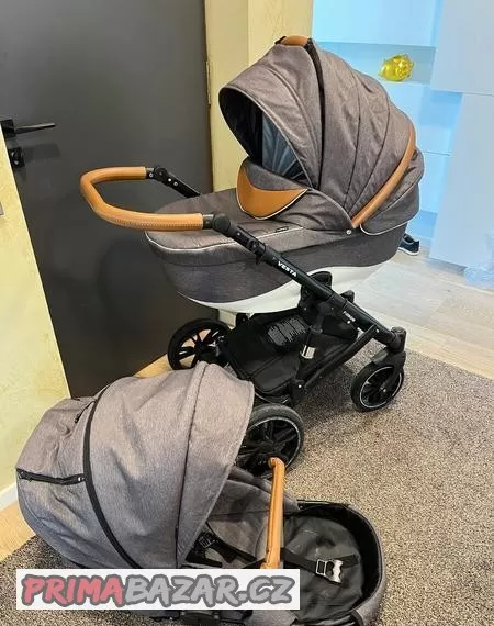 Velká korba délka 85cm s možností vyvýšení pod hlavou, odpružený podvozek, nafukovací kola, přední s možností aretace, jízda v obou směrech, sporťák lze dát až do lehu, prodloužená stříška s všitou moskytiérou. Součástí pláštěnka, moskytiera, držák pití, nánožník na korbu i sporťák.