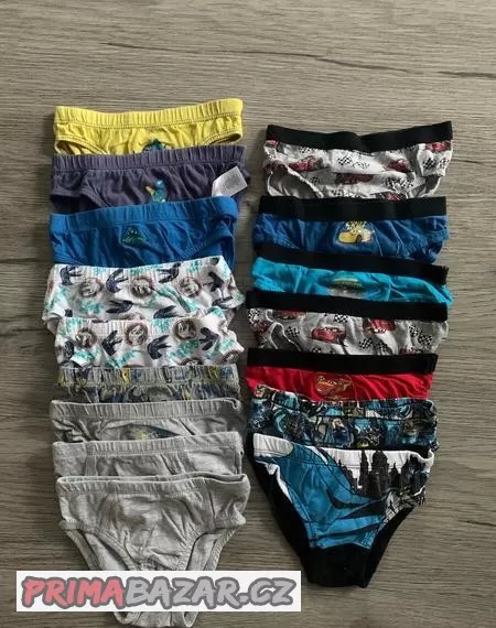 Prodám slipy vel. 116, celkem 16ks, cena celkem 140Kč.