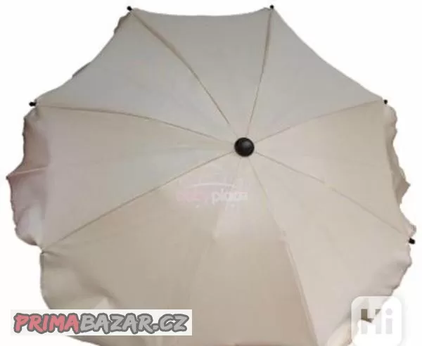 Univerzální slunečník světle hnědé barvy s nastavovacím kloubem a prodlouženým úchytem, vhodný na jakýkoliv typ kočárku. Předání Suchdolsko či zásilkovnou.