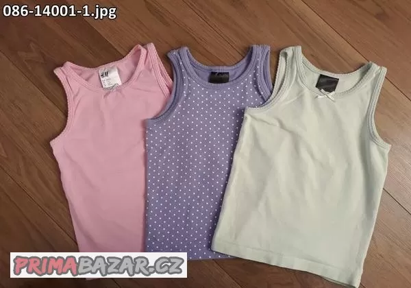 vel. 086 - 14001: 3x tílko H&M, světle růžové, fialové s puntíky, světlounce zelené, vel. 86/92 ..... 60 Kč celkem nebo 3x 25 Kč samostatně