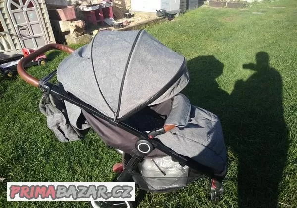 Ve velice dobrém stavu, velmi lehký. Používaný pouze příležitostně do města a na výlety. Jde do úplného lehu, stříška jde hodně překlopit aby nesvítilo, nepršelo, nefoukalo na dítko, nafukovací kola, pláštěnka, nánožník. Nepadací deka možnost dokoupit za 500, přidám rukávník Emitex. Přidám ještě druhý sporták, který byl používaný na každodenní ježdění u nás po vsi.