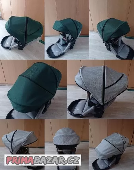 Stříška má uvnitř zašité plastové výztuhy, navléká se na Váš přední plastový oblouk, vzadu na suchý zip k sedáku. Okýnko umístěno do zadního dílu, prodlužovací díl na zip uprostřed.