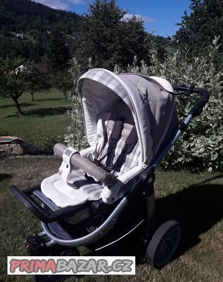 Prodám krásný kočárek Teutonia Spirit S3, po dvou dětech. Cena 2.900kč. Limitovaná edice bílá kůže v kombinaci s béžovou šedou kostičkou. Bohužel v místě, kde se sklápí bouda a na pásku k hrazdičce je u sportovní verze kůže popraskaná (viz foto). Drobné škrábance na konstrukci. Jinak je kočárek v super stavu, technicky vše plně funkční, hluboká korbička jako nová, servisovaný v autorizovaném servisu. Dobře se ovládá, velká kola, jezdili jsme i v terénu i ve sněhu.