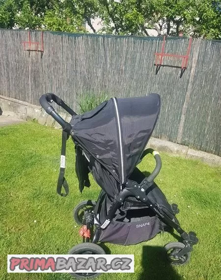 Prodám kočár Valco Snap 4 černé barvy po dvou dětech. Kočár sloužil na cestování. Má běžné známky užívání. Vada na stříšce viz foto (nemá vliv na funkci). Kolečka stav viz foto.