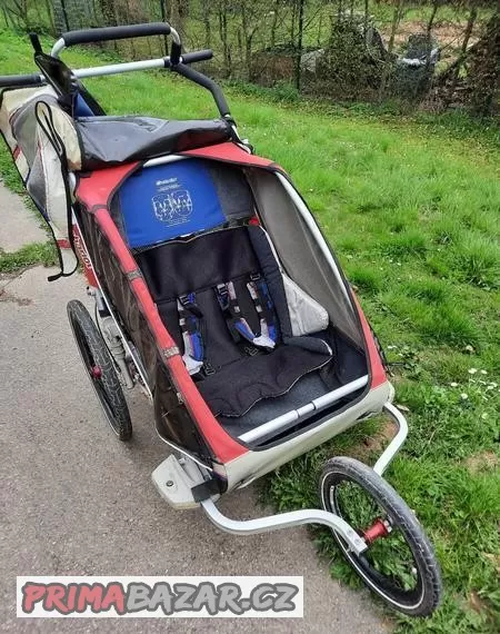 lně funkční dvouvozík značky Chariot výroby do roku 2013. Jsme druzí majitelé. Brzdy, zipy, suché zipy, aretace na brzdě fungují. Zachovalý, pouze kosmetické vady. Lze střídat funkci kočárku i vozíku za kolo.