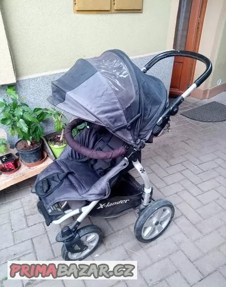 Nabízíme používaný, ale plně funkční kočárek X-Lander XA s pláštěnkou.