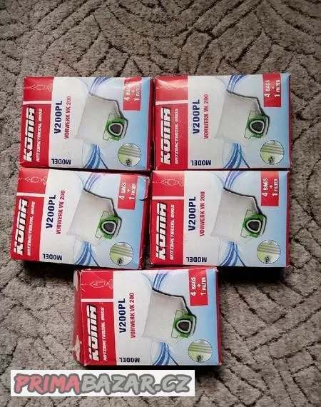 4 NOVÉ BALENÍ PO 4 KUSECH SÁČKU +4 FILTRY. + 1 BALENÍ SE 3 KUSY SÁČKU NOVÉ. CELKEM 19 KUSŮ. NA VYSAVAČ WORWERK KOBOLT VK 200.