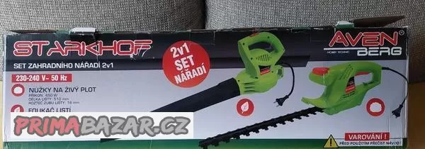 Zahradní set nářadí STARKHOF Set nářadí STARKHOF - obsahuje nejpoužívanější a nejprodávanější stroje elektrické plotostřih nůžky + zahradní fukar - na listí . Napájení 230 V Plotostřih Výkon 450 W Délka stříhací lišty 510 mm Foukač na listí Výkon: 850 W Rychlost proudění vzduchu: 250 km/h