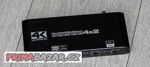 Prodám HDMI switch. Pošle obraz ze čtyř různých zařízení na 2 TV. Umí 4K do 60Hz, HDR i ARC.